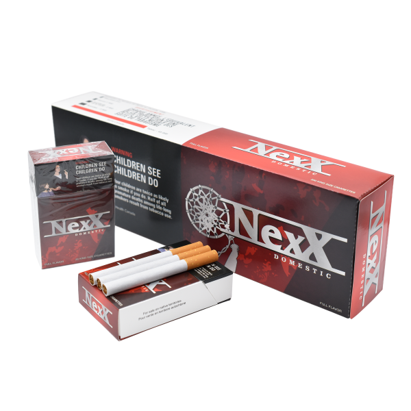 Nexx Domestic Full Flavor is also 100 percent Canadian tobacco. These are the strongest Cigarettes we stock. They have a full-bodied taste, offering a more intense and robust smoking experience for those who prefer a stronger, deeper taste. These cigarettes are made with a denser blend of Canadian tobacco, which gives them their distinctive flavor and rich, satisfying smoke.